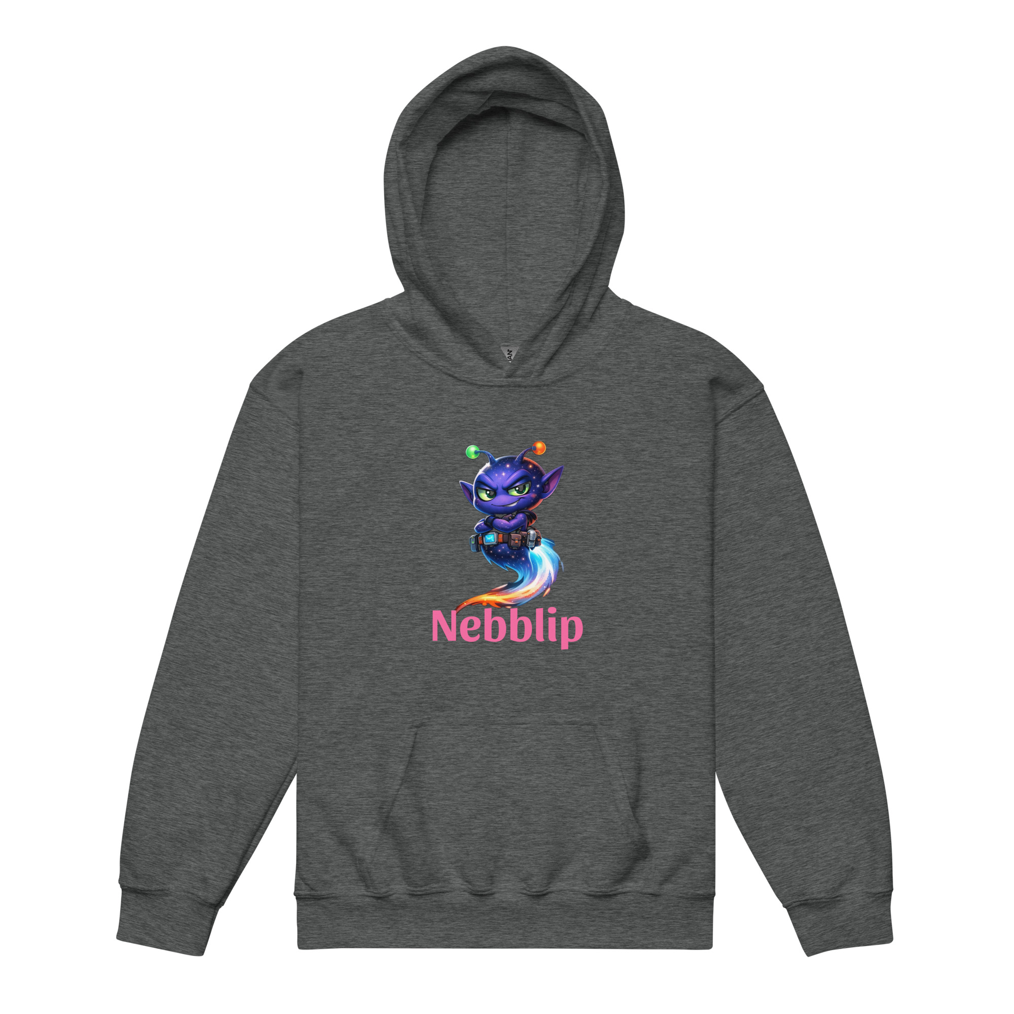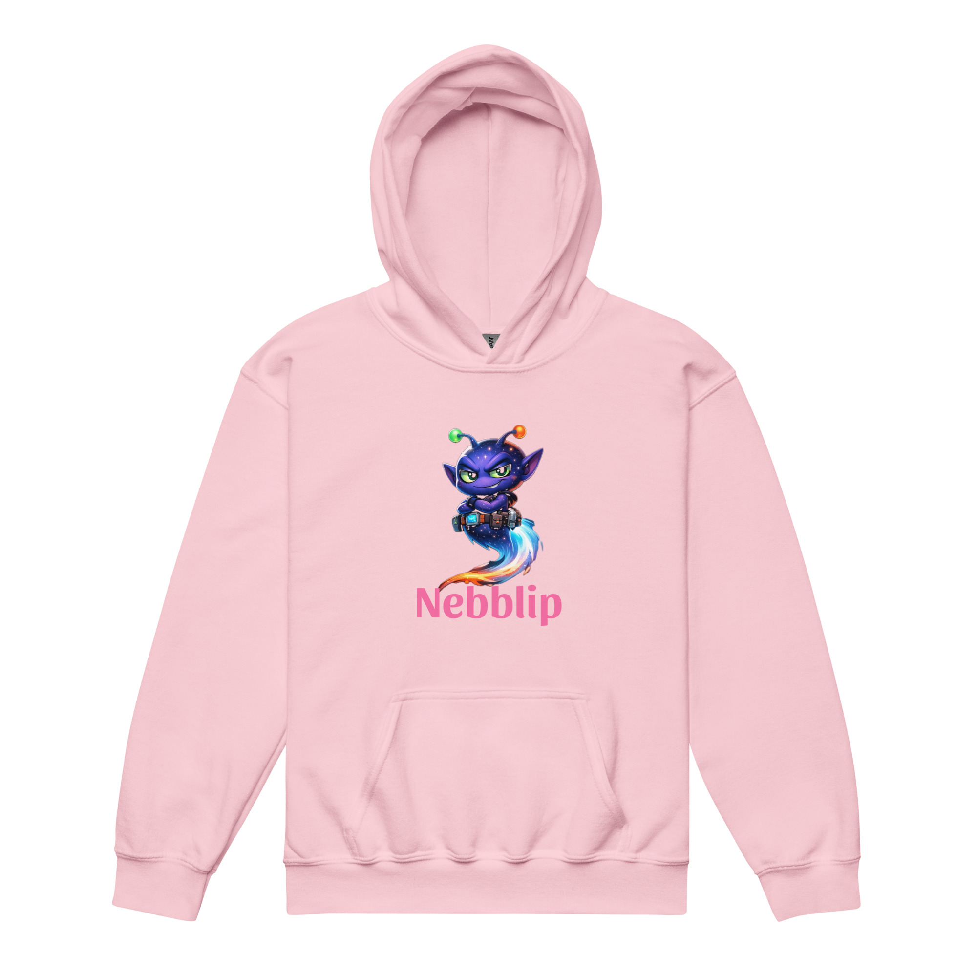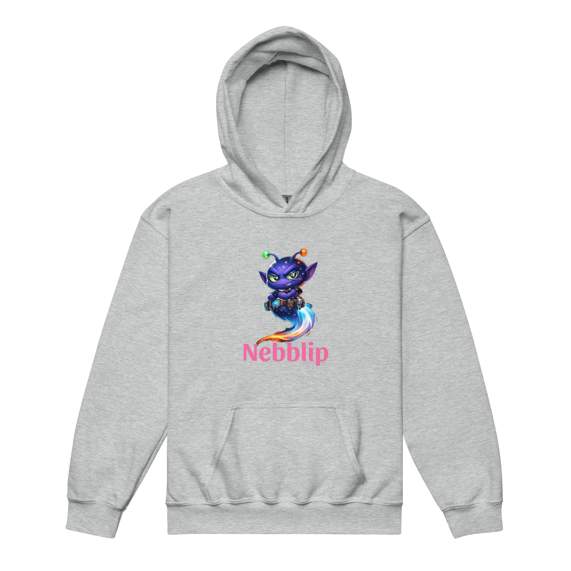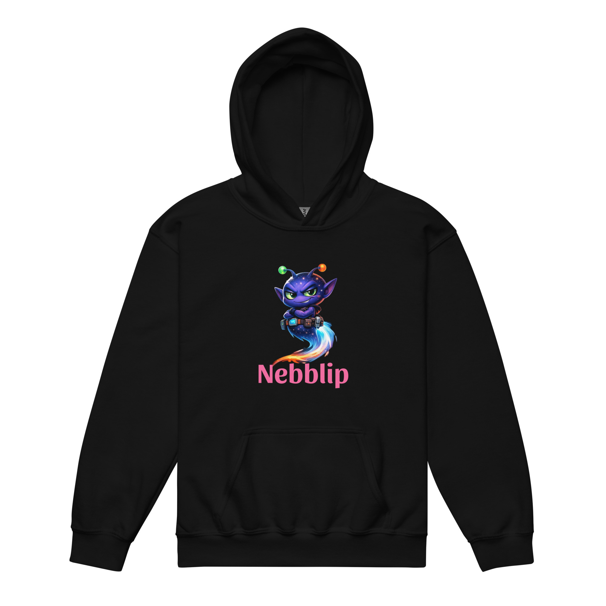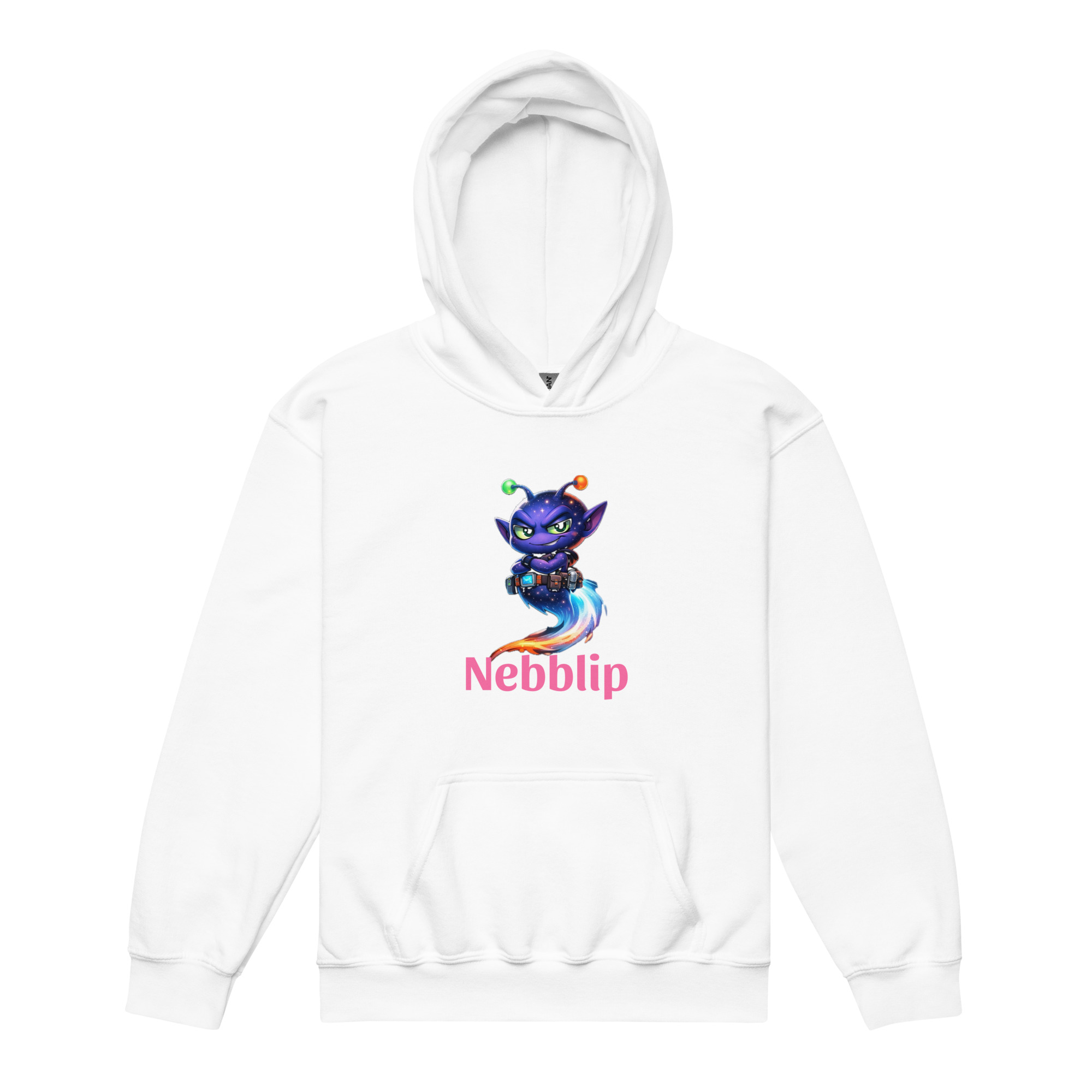 The Youth Nebblip Hoodie wraps your little trailblazer in soft, everyday comfort with a bold splash of intergalactic personality. Front and center is Nebblip in his iconic explorer stance, wide-eyed, alert, and ready to scan the cosmos for the next signal. His signature glow pops against the fabric like a beacon from another world.